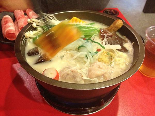 不一會兒原本看不到湯的胡麻鍋呈現出來了, 好香啊