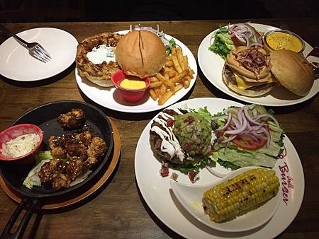 約十分鐘後上菜, 吼, 漢堡一口氣全上來, 雙人餐只能點二份主餐, 我們應是加點一份