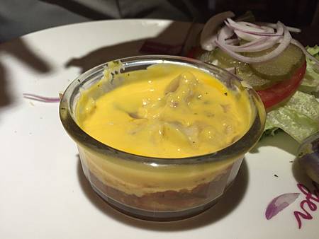 本以為這只是杯漂亮的起司醬, 近看細看之下 是配菜的起司肉醬薯泥...吼