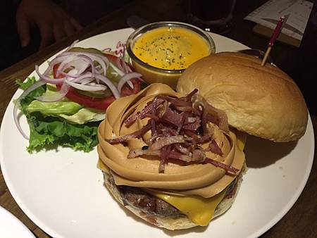 朋友指定要嚐的花生醬牛肉堡 (我在別家吃過, Bravo的花生醬擠得真美)