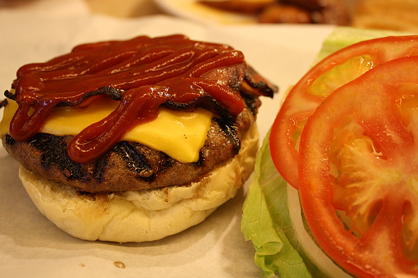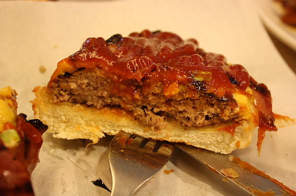 招牌牛肉堡$195, 我超喜歡網狀烤痕, 同樣的, 上面覆蓋了培根, 與熱熱快融化的起司