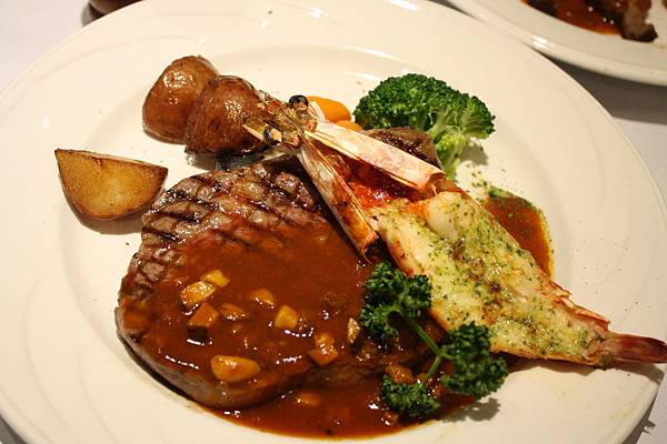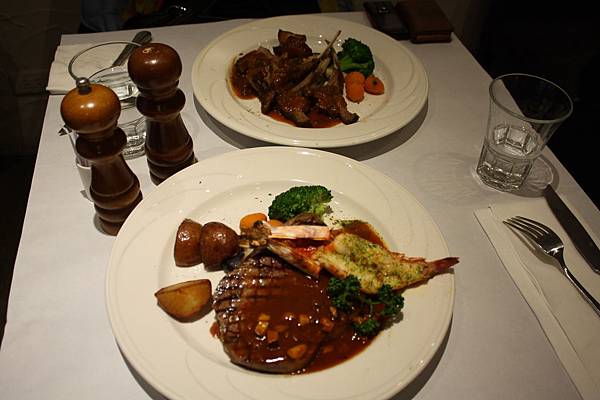 今天是來吃排餐, 沙朗佐大蝦($480), 犢小羊排($420), 平常需加價才能成為套餐