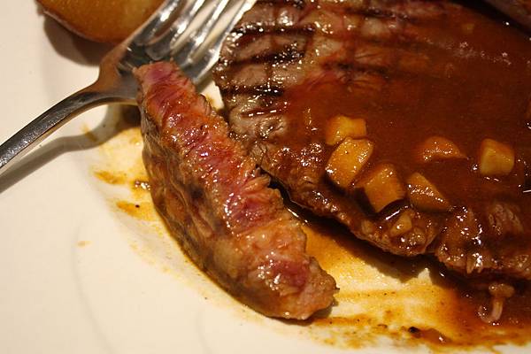 特別一提的是, 配菜中這馬鈴薯選得真好, 好吃; 店家很用心, 上桌的瓷盤也是燙的, 讓食物保持美味